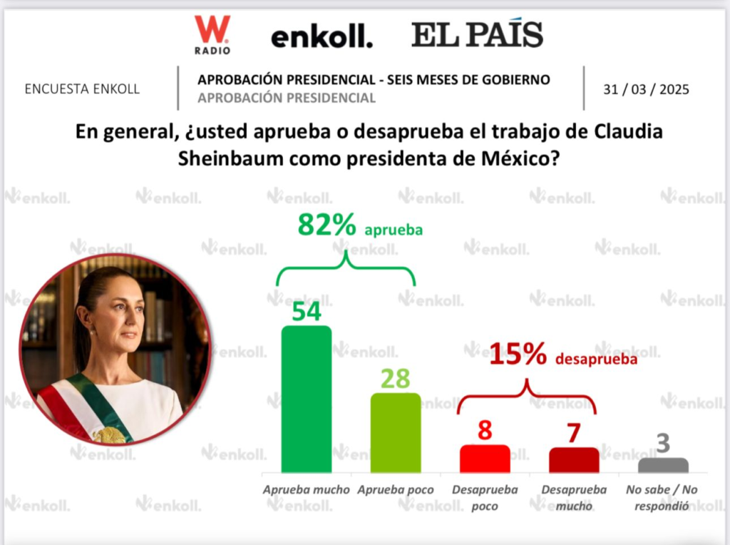 De acuerdo con la más reciente encuesta de Enkoll, realizada en conjunto con W Radio y El País, la Presidenta,